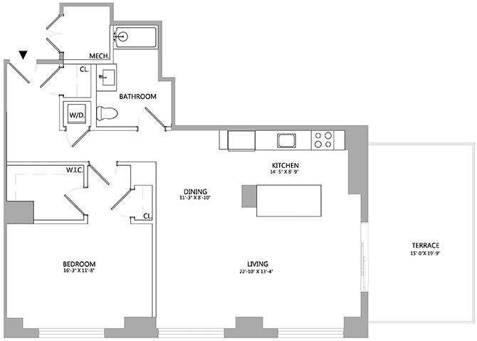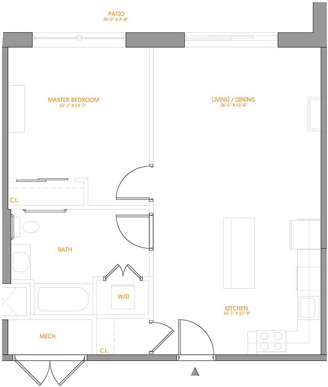 Modelo de apartamento: 1 Bed/1 Bath-05Desde $3,7741 Dormitorio, 1 Baño, 795 sq ftDisponible Ahora![]()
