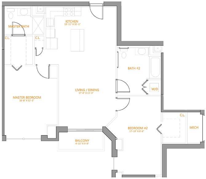 1 Dormitorio, 1 Baño, 795 pies²Disponible AhoraGalería del Modelo