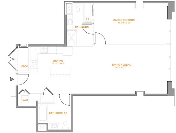 1 Dormitorio, 1 Baño, 696 pies²Disponible AhoraGalería del Modelo