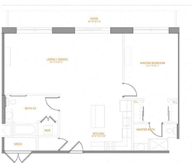 Estudio, 1 Baño, 760 pies²Galería del Modelo