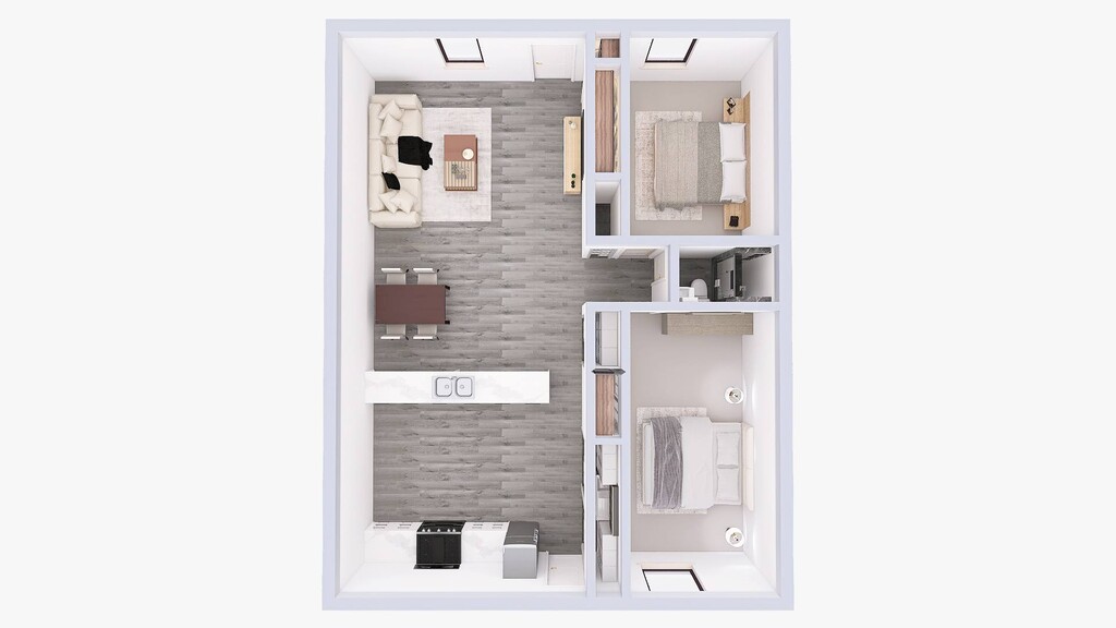 2 Dormitorios, 1 Baño, 840 pies²Galería del Modelo