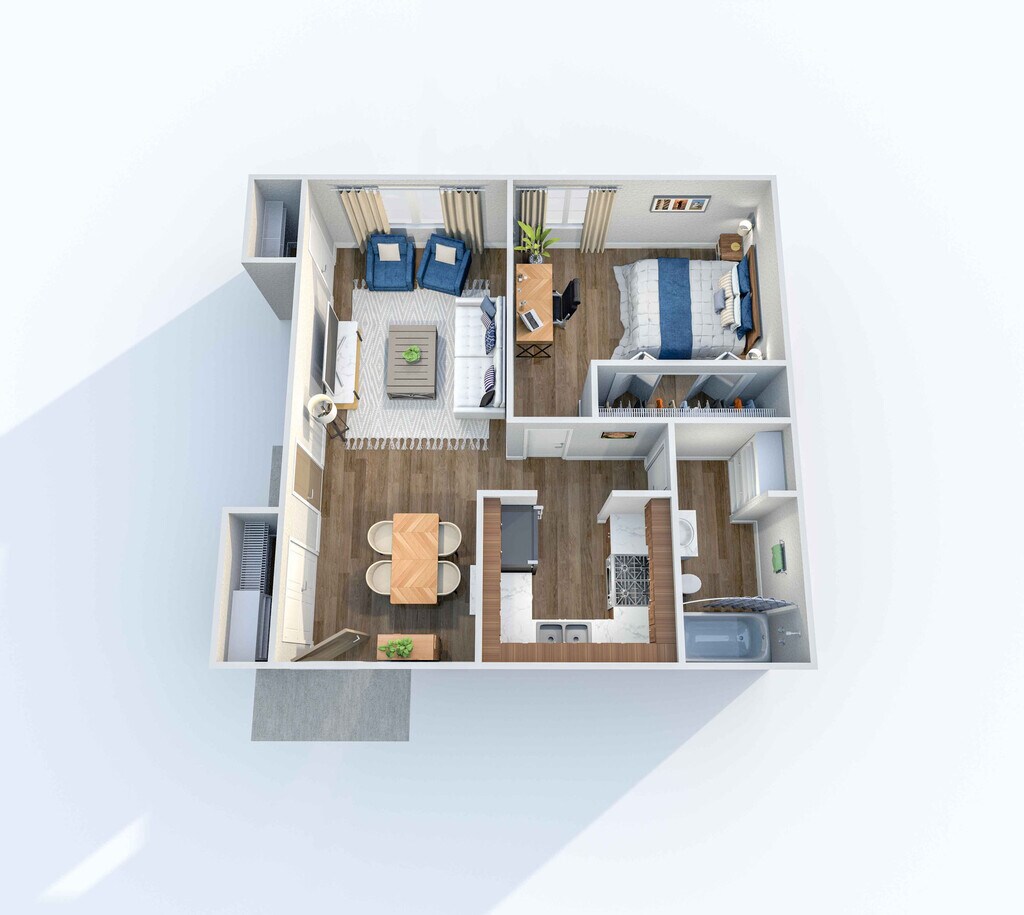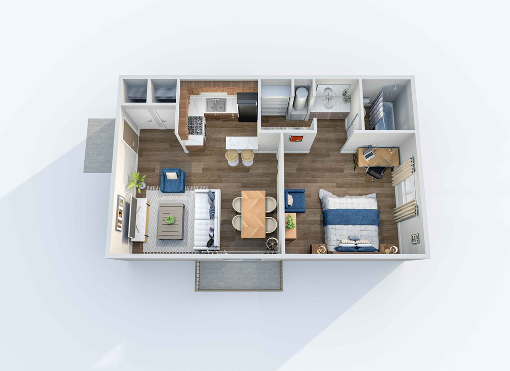 1 Dormitorio, 1 Baño, 700 pies²Galería del Modelo