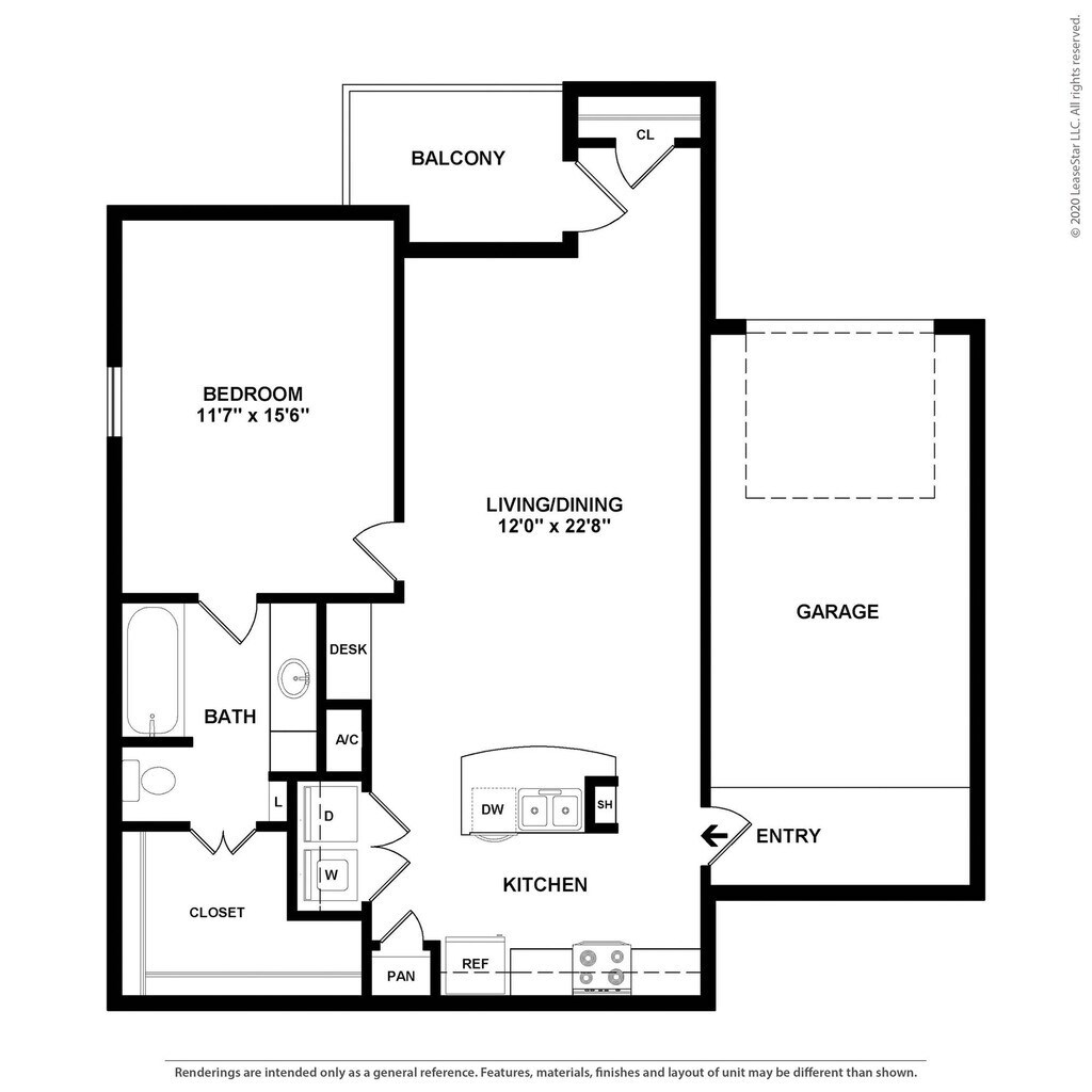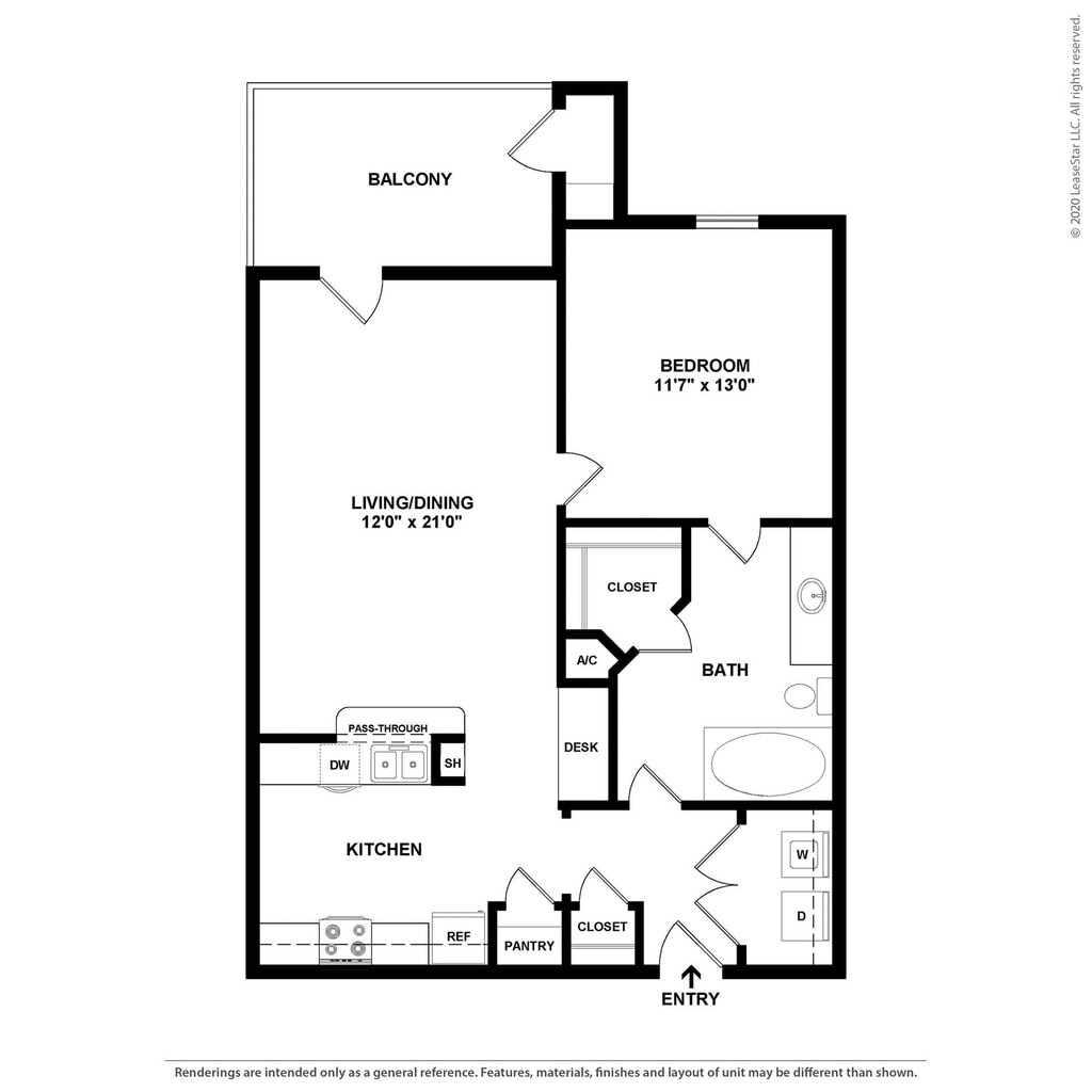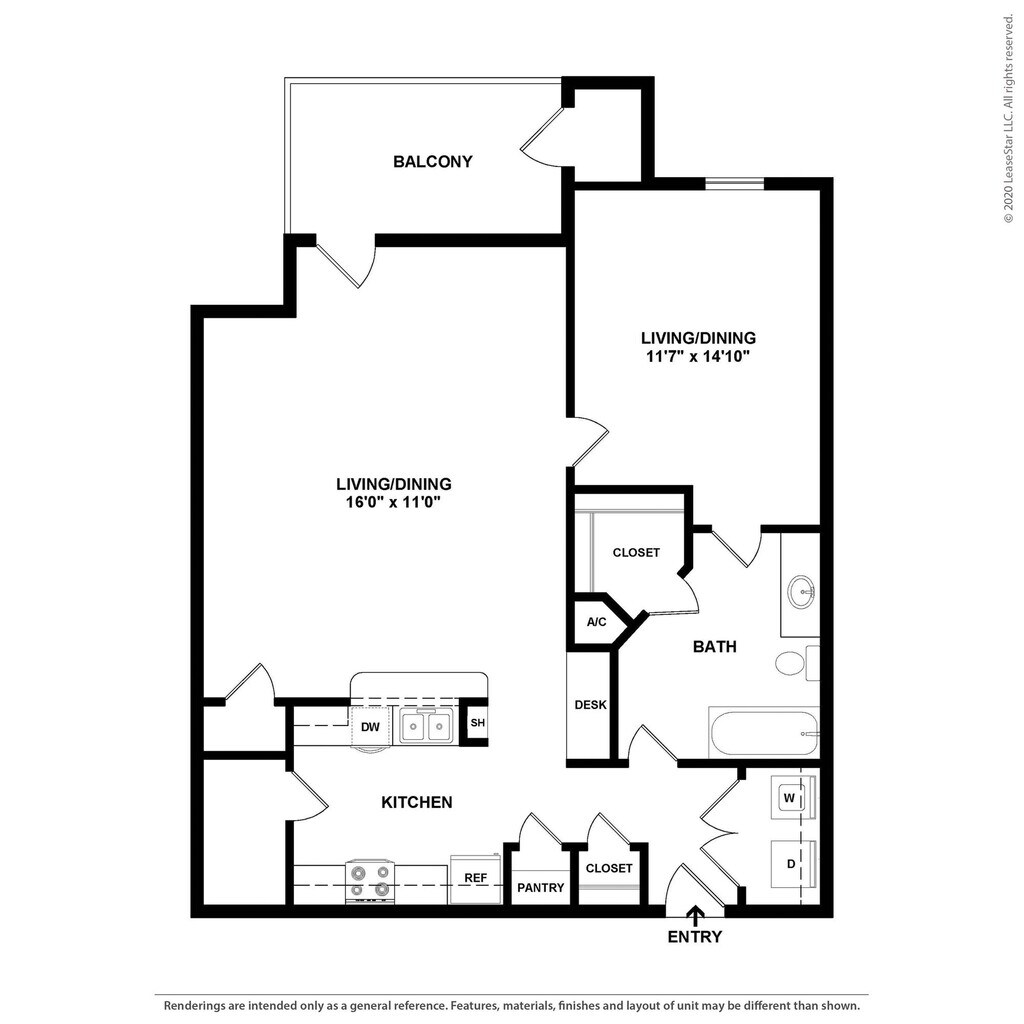 1 Dormitorio, 1 Baño, 752 pies²Disponible Nov 29Galería del Modelo