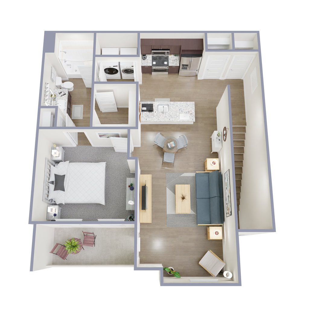 1 Dormitorio, 1 Baño, 723 pies²Disponible AhoraGalería del Modelo