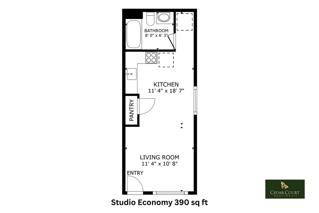 Studio Standard - Plano 5 Unidad de apartamento: 102Modelo de apartamento: Studio Standard$1,375Estudio, 1 Baño, 520 sq ftDisponible AhoraStudio Economy
