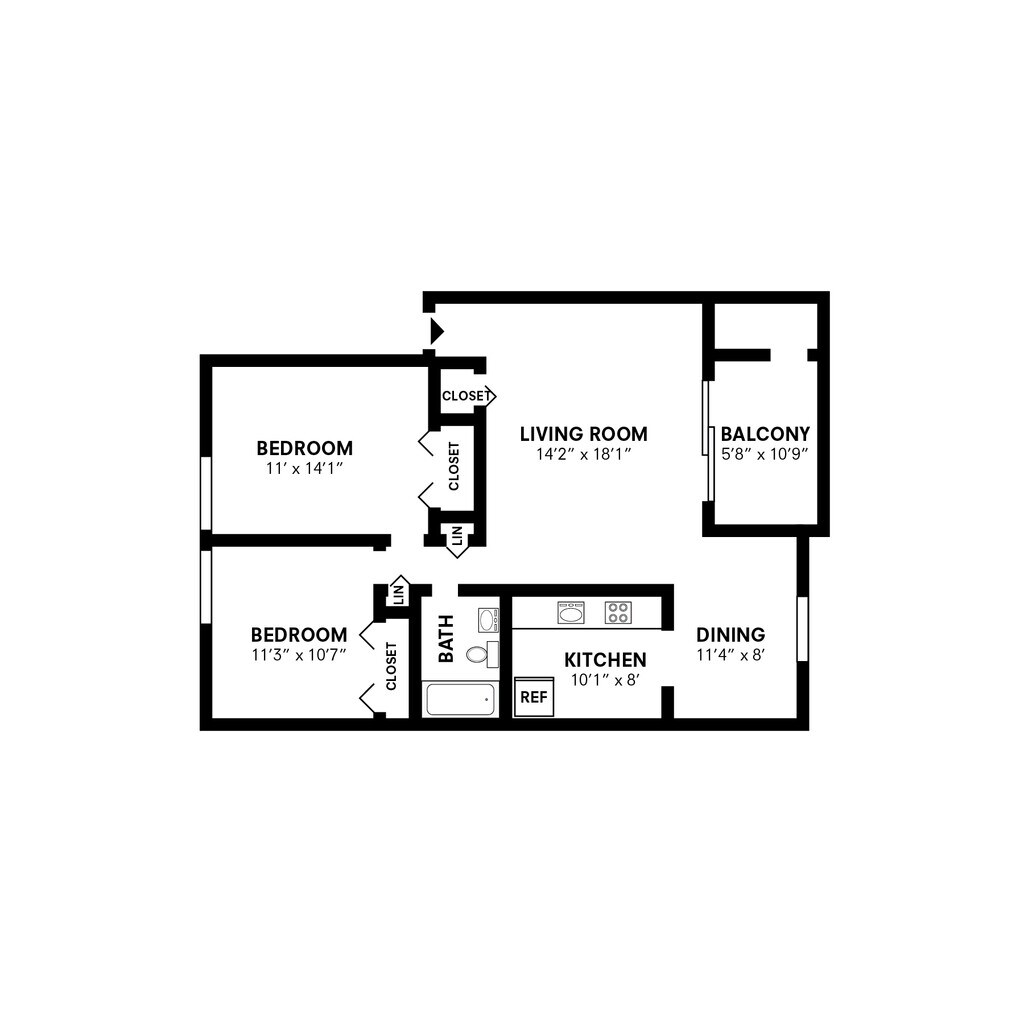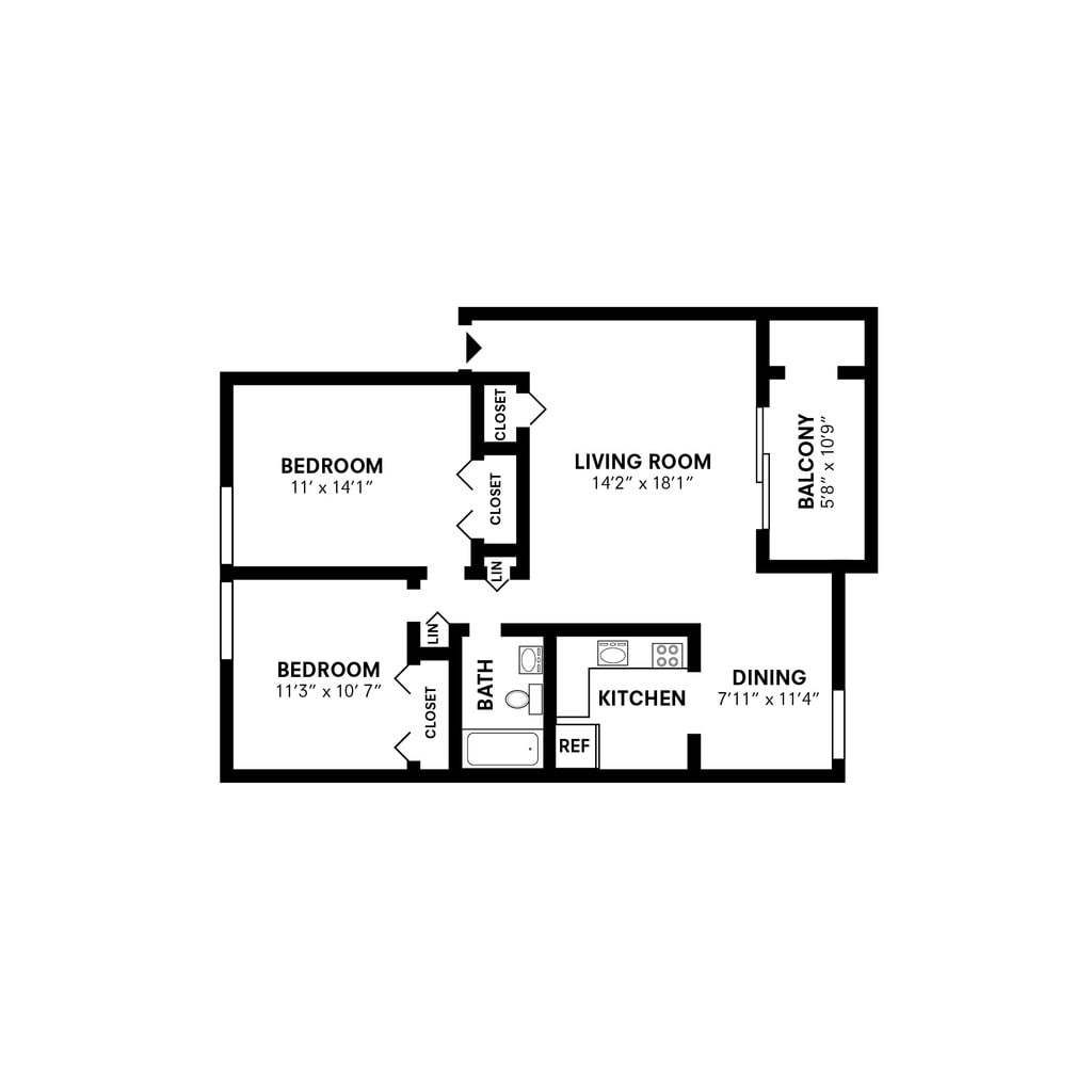 One Bedroom - 659 sqft - Plano 2 Unidad de apartamento: 217BModelo de apartamento: One Bedroom - 659 sqft$1,4051 Dormitorio, 1 Baño, 659 sq ftDisponible January 25, 20262 Dormitorios
