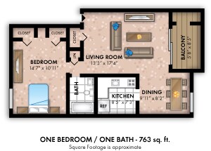 One Bedroom - 763 sqft - Plano 1 ![]()