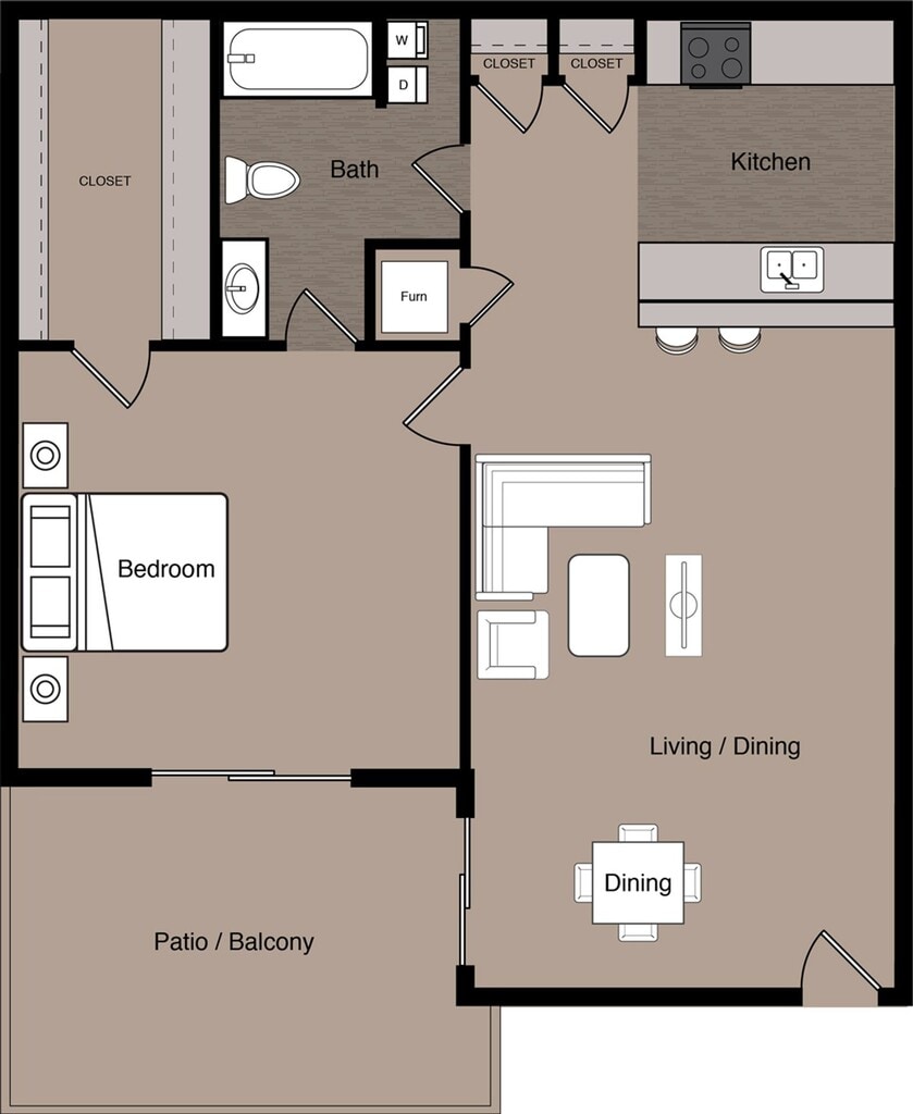 1 Dormitorio, 1 Baño, 850 pies²Disponible AhoraGalería del Modelo
