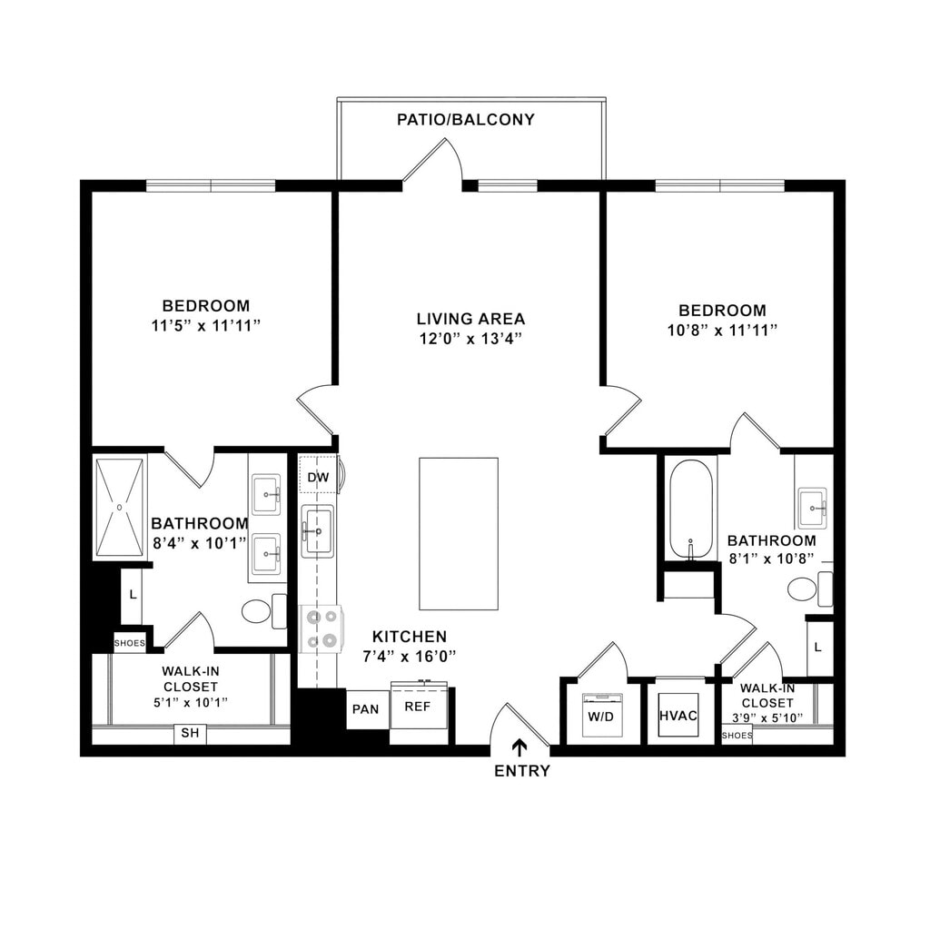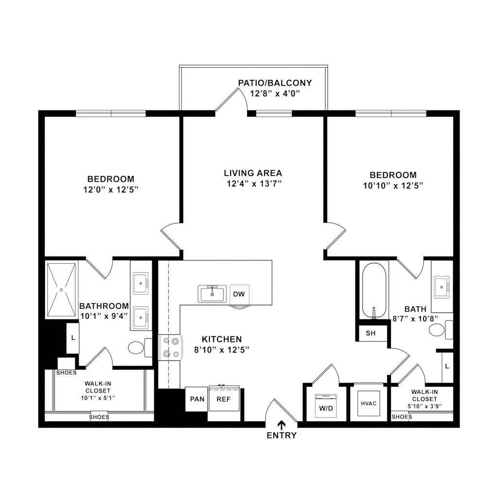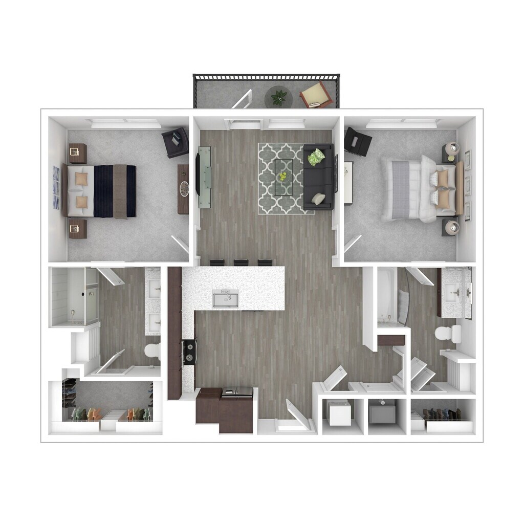 Modelo de apartamento: A2Desde $1,5261 Dormitorio, 1 Baño, 753 sq ftDisponible Ahora![]()