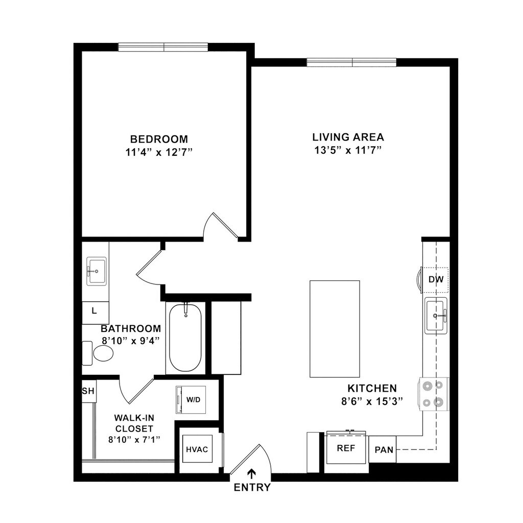 Modelo de apartamento: A1Desde $1,4011 Dormitorio, 1 Baño, 640 sq ftDisponible Ahora![]()