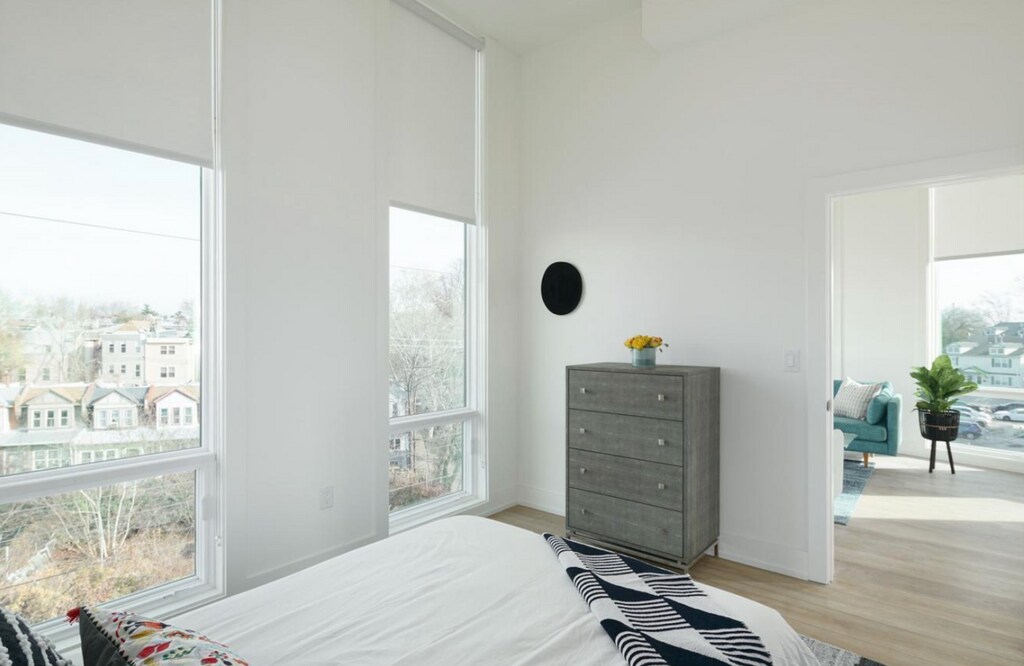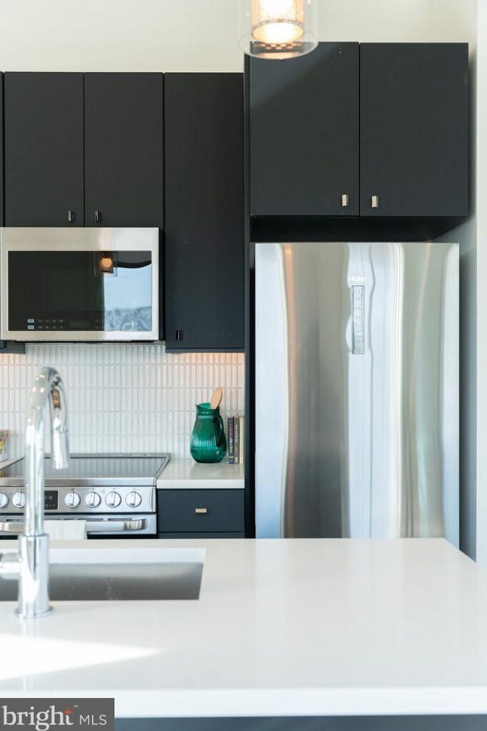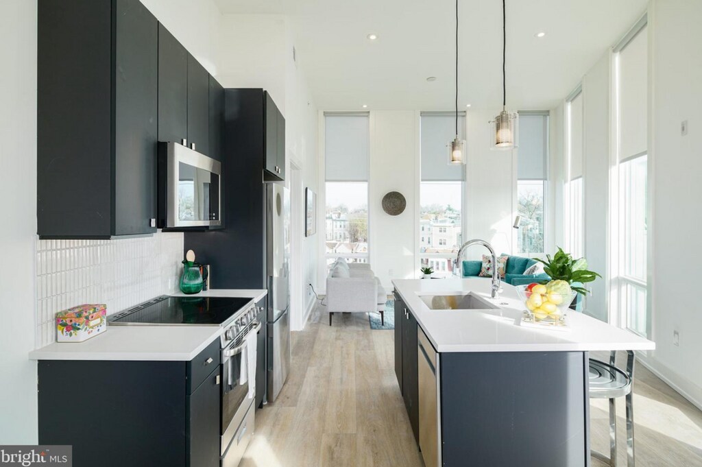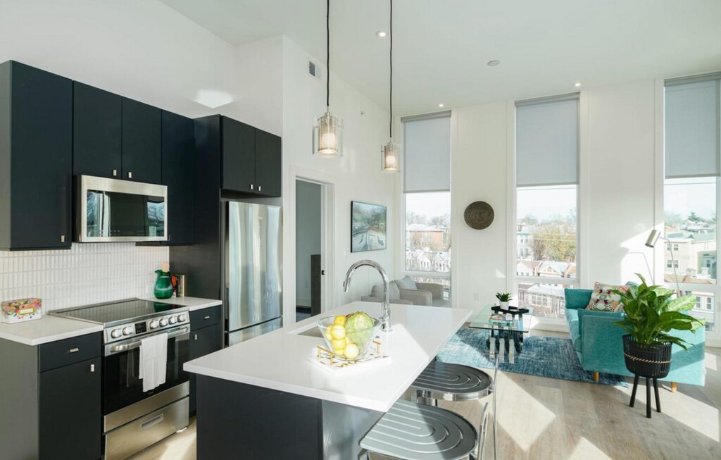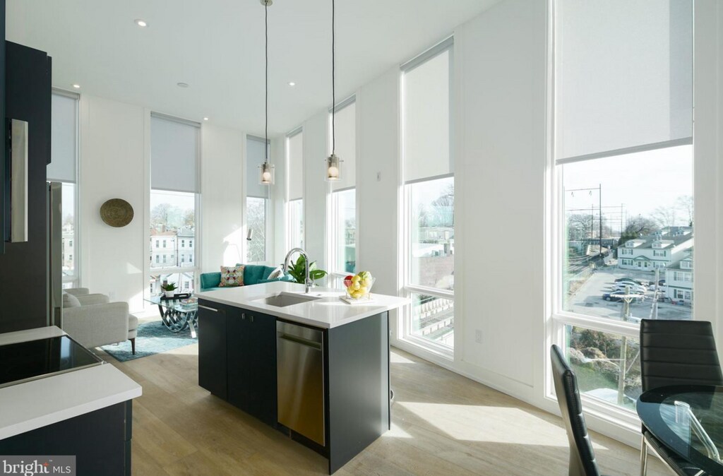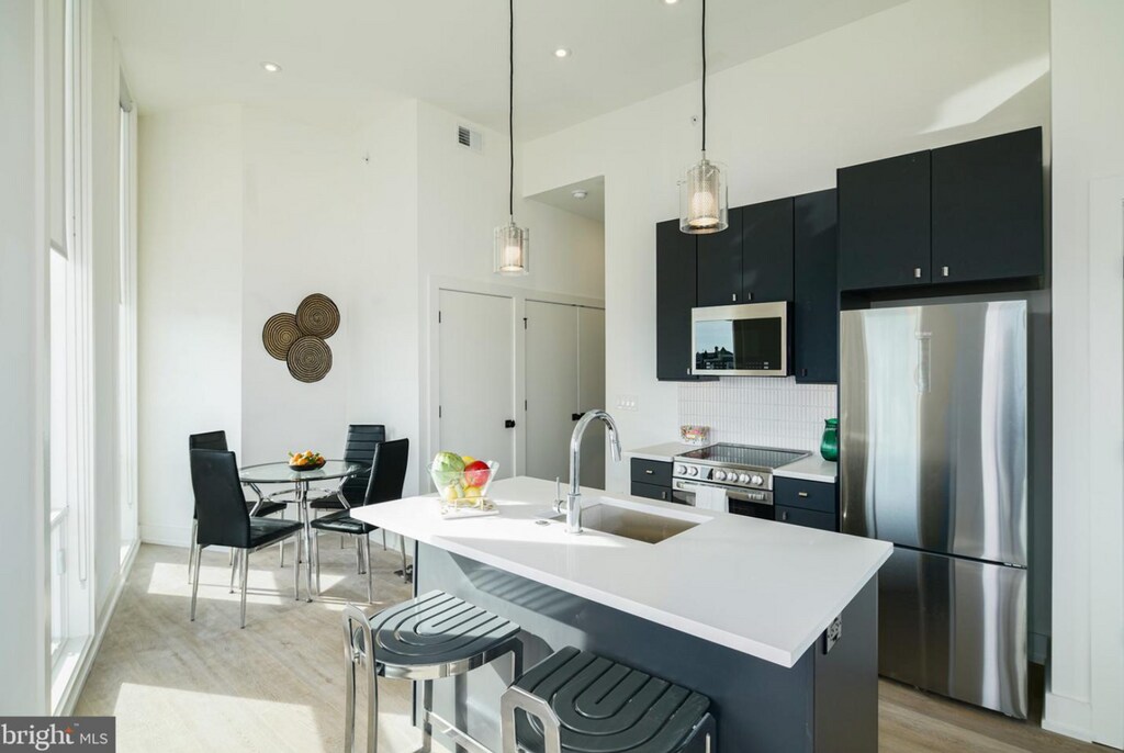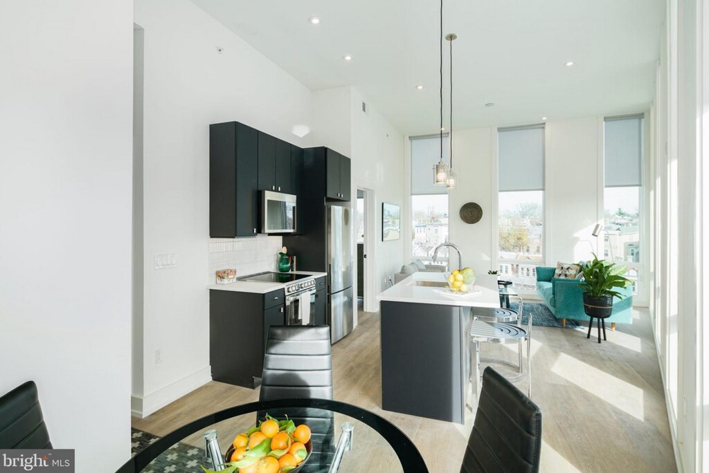 The Meadowline is situated in Philadelphia's Kingsessing neighborhood. It has everything one could need inside and out. With 65-units over five floors, there are 1 BD/1 Bath, 2 BD/1 Bath, and 2 BD/2 Bath units available, with plenty of floor plans to choose from. The building features (2) elevators, a state-of-the-art fitness center with Peloton bikes, Latch keyless entry, bike storage, dedicated mailroom, and an artfully designed communal lounge with observation deck. Each unit has been tastefully designed throughout. Kitchens feature stainless steel GE Haier appliances, matte black cabinetry, Mitzi pendants, and pure white quartz countertops. CB2 kitchen hardware is accented by the Delta fixtures and the pure white quartz countertops are accented with beautiful Ann Sacks backsplash. Bathrooms feature Ann Sacks tile, floating vanities, mirrors with built-in lighting and Delta fixtures. Each bedroom is adorned with an artistic light fixture. The Meadowline also features an extensive Apiary designed outdoor experience with dog park, picnic areas, community garden plots, elevated landscaping and more! With 24 hour surveillance, dedicated secure parking spaces, and a walk score of 84, do not miss your chance to move in Parking available on a first-come, first-serve basis. $35 flat water fee/mo. Photos of similar unit