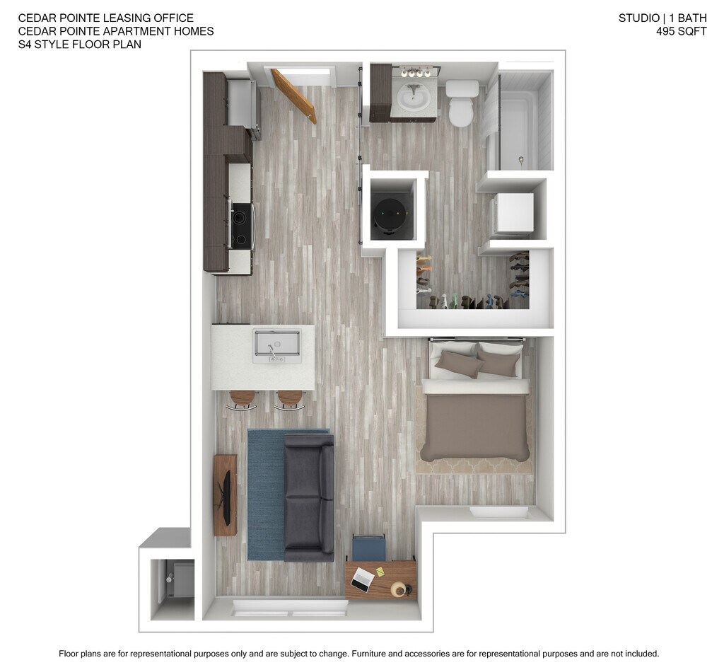 Modelo de apartamento: S4$1,440Estudio, 1 Baño, 495 sq ftDisponible August 1, 2026![]()