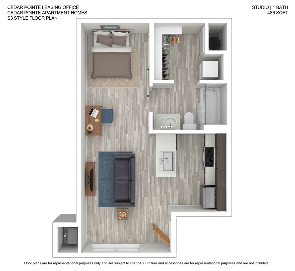 Modelo de apartamento: S3$1,440Estudio, 1 Baño, 486 sq ftDisponible August 1, 2026![]()