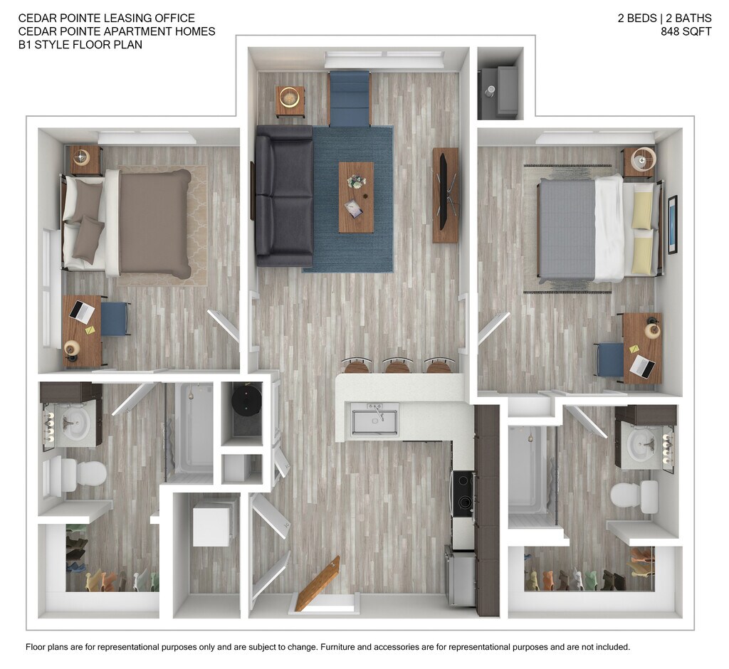 Modelo de apartamento: B1$1,8802 Dormitorios, 2 Baños, 848 sq ftDisponible August 1, 2026![]()