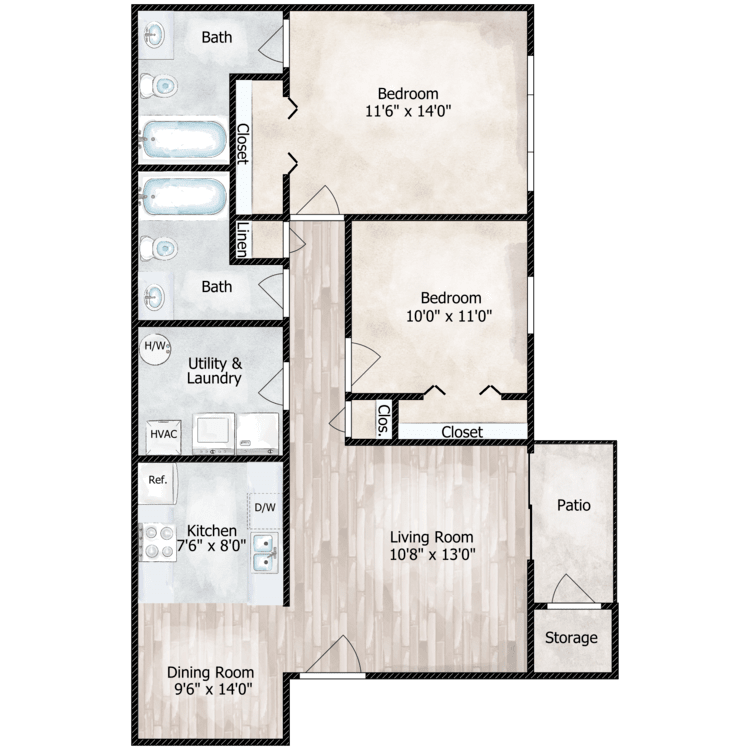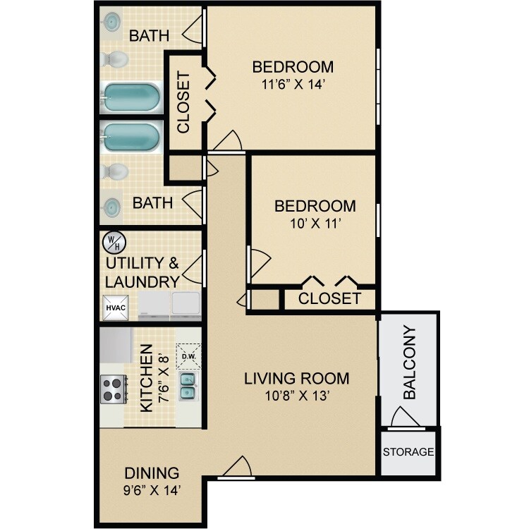 Modelo de apartamento: 2 Bed 2 Bath2 Dormitorios, 2 Baños, 858 sq ftDisponible AhoraPlanosFotos![]()