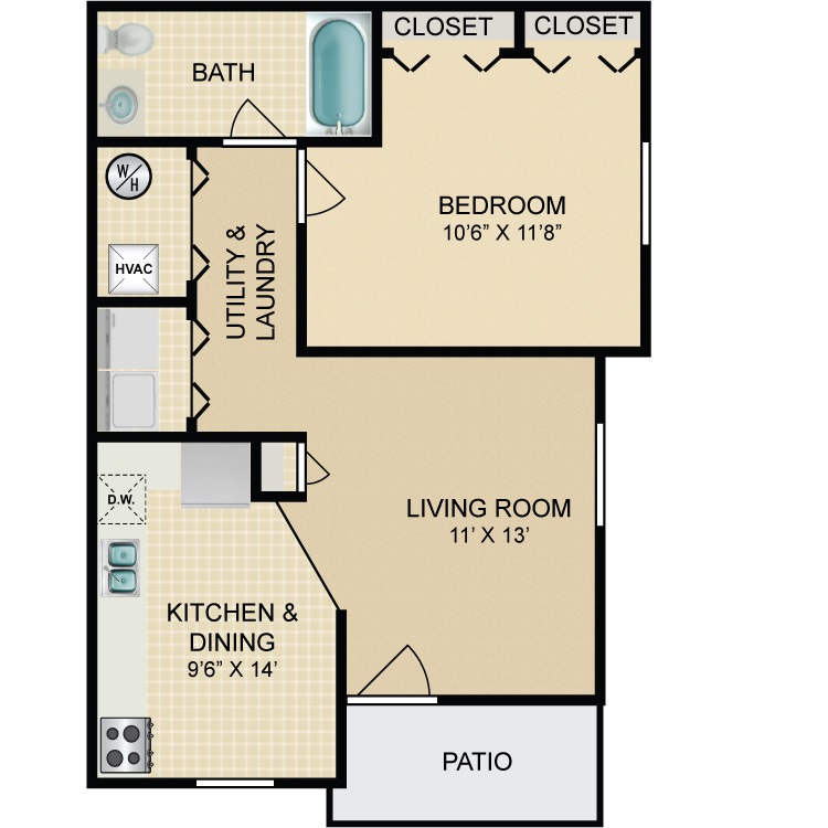 1 Bed 1 Bath - Plano 1 ![]()