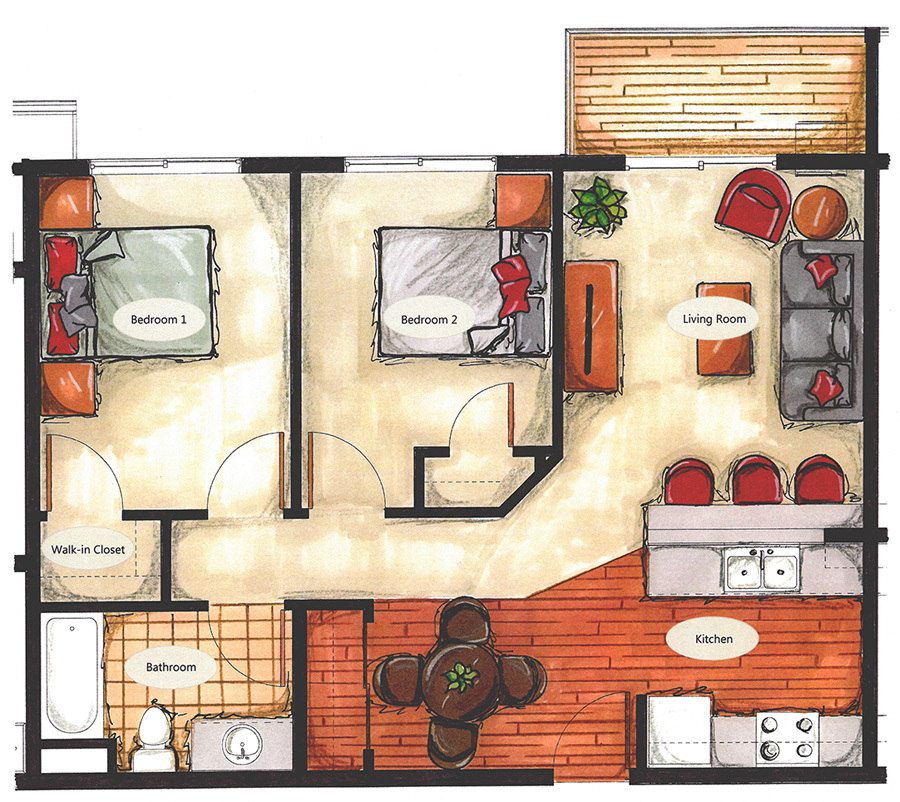 2 Bedroom / 1 Bathroom Std - Plano 4 Unidad de apartamento: 2-112Modelo de apartamento: 2 Bedroom / 1 Bathroom Std$1,0452 Dormitorios, 1 Baño, 820 sq ftDisponible Pronto![]()