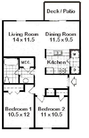 Modelo de apartamento: 2 Bedroom2 Dormitorios, 1 Baño, 869 sq ftNo Disponible![]()