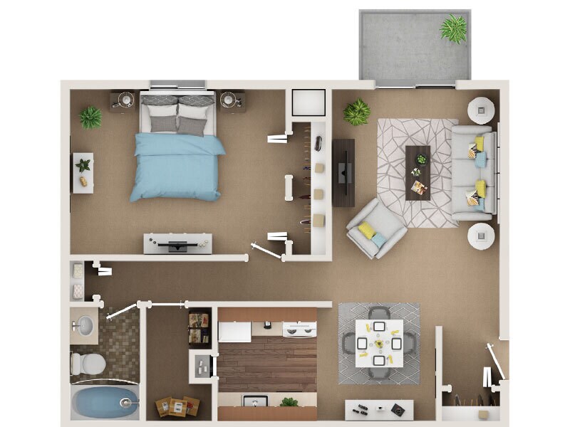 1 Dormitorio, 1 Baño, 800 pies²Disponible AhoraGalería del Modelo