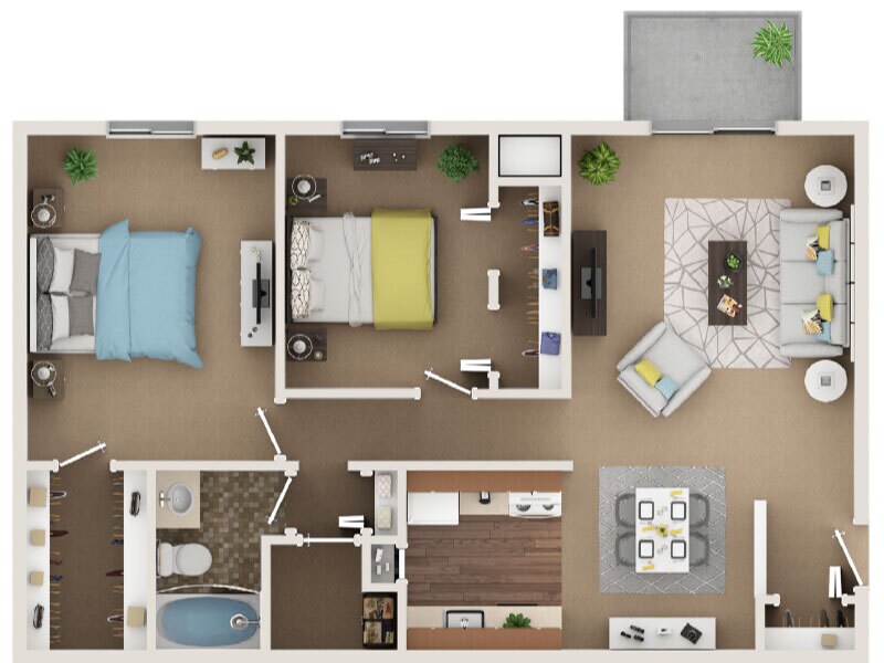 2 Dormitorios, 1 Baño, 950 pies²Disponible AhoraGalería del Modelo