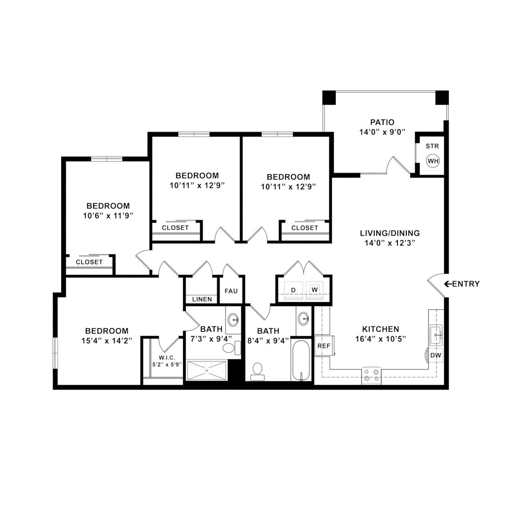 Sundrop - Plano 3 Unidad de apartamento: 201Modelo de apartamento: Sundrop$3,5134 Dormitorios, 2 Baños, 1389 sq ftDisponible Ahora