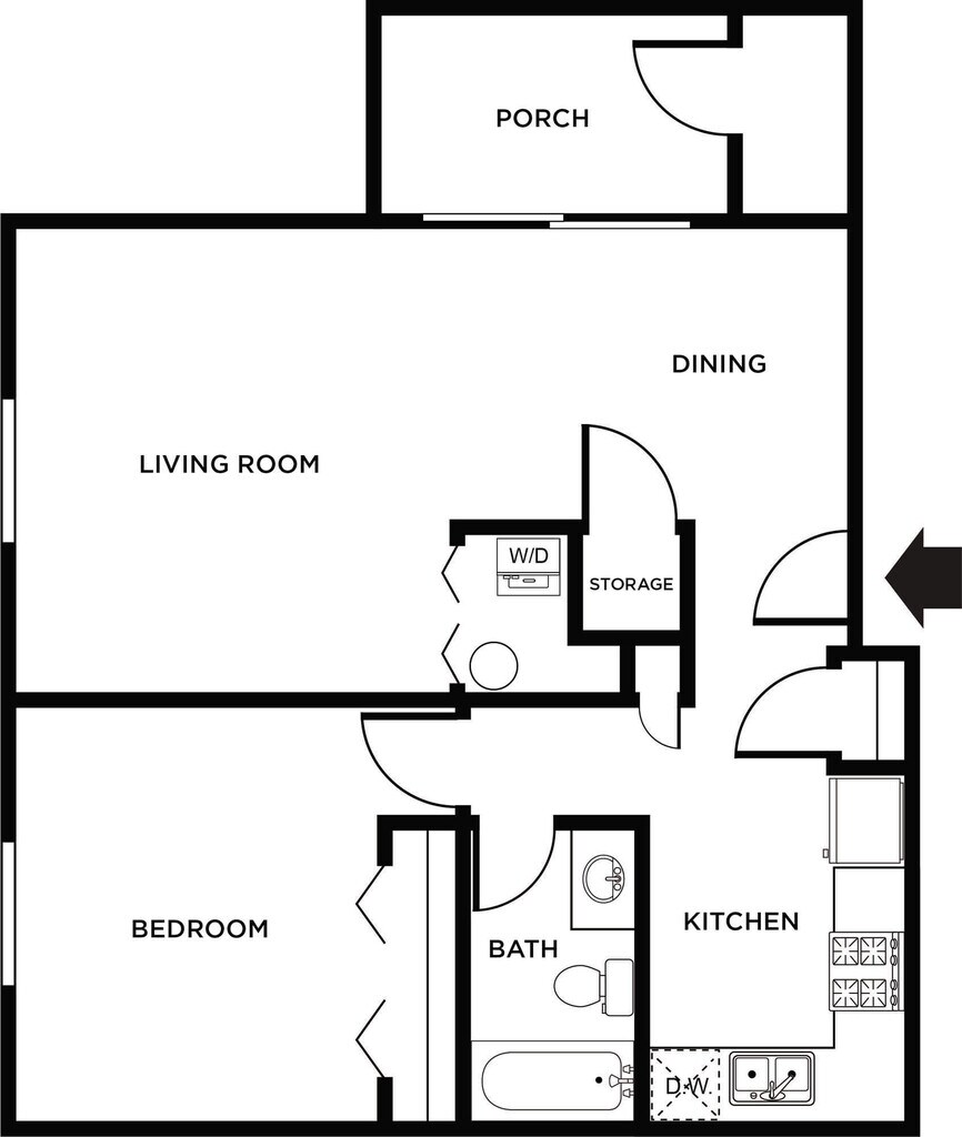 1 Dormitorio, 1 Baño, 726 pies²Galería del Modelo