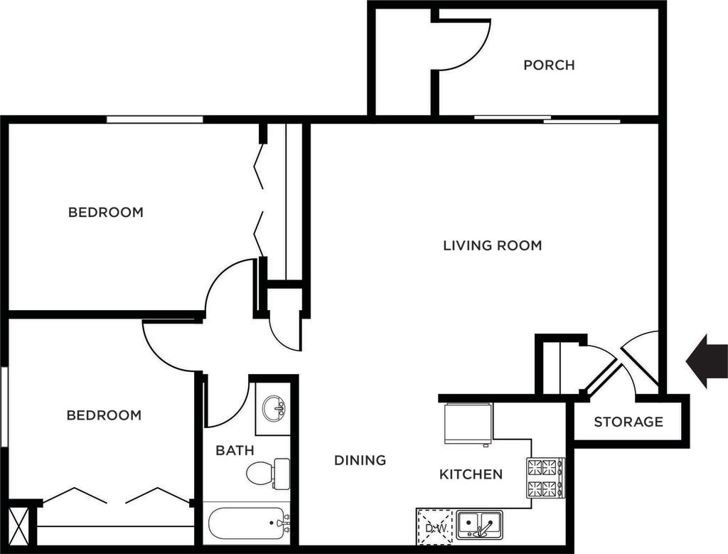 2 Dormitorios, 1 Baño, 850 pies²Galería del Modelo