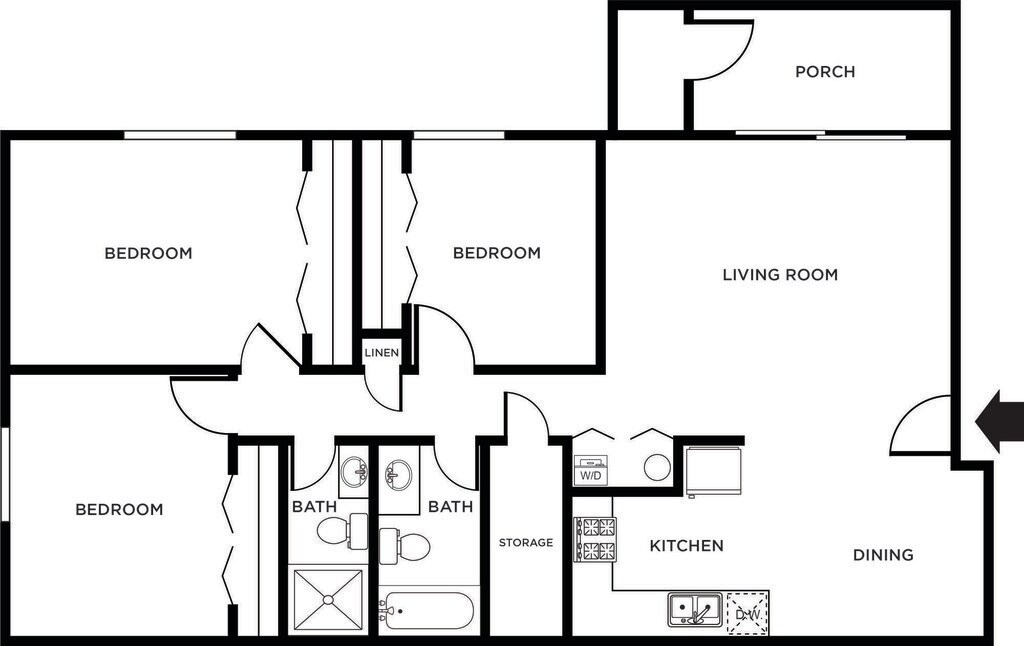 3 Dormitorios, 2 Baños, 1085 pies²Galería del Modelo