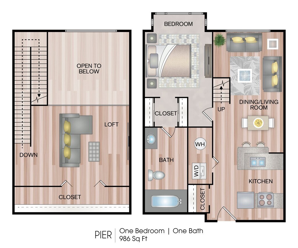 Modelo de apartamento: PierLlame para Precios1 Dormitorio, 1 Baño, 926 sq ftNo Disponible![]()