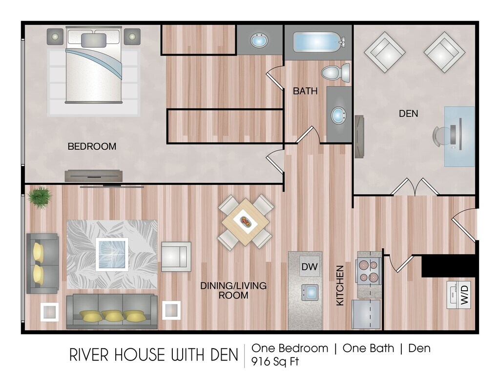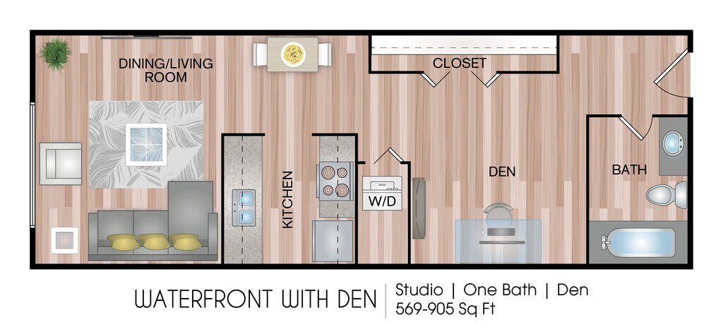 Modelo de apartamento: Waterfront with DenDesde $1,625Estudio, 1 Baño, 569-905 sq ftDisponible February 21, 2026![]()