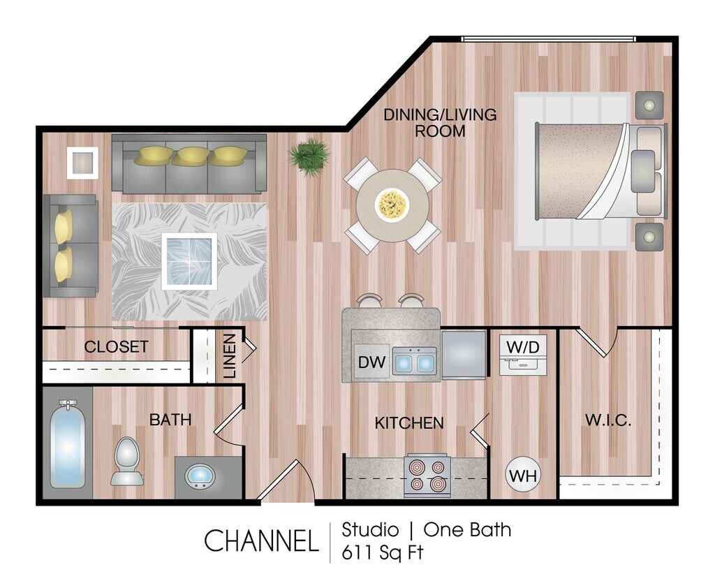 Modelo de apartamento: ChannelLlame para PreciosEstudio, 1 Baño, 611 sq ftNo Disponible![]()
