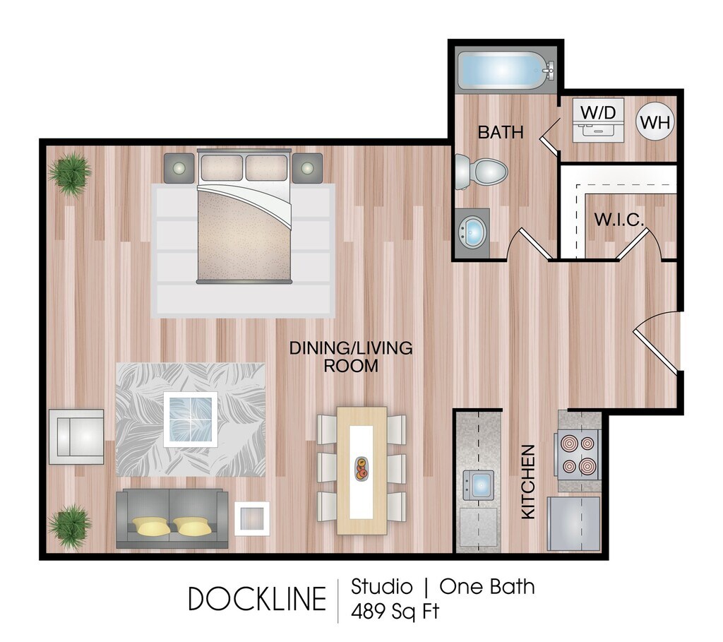 Modelo de apartamento: DocklineLlame para PreciosEstudio, 1 Baño, 489 sq ftNo Disponible![]()