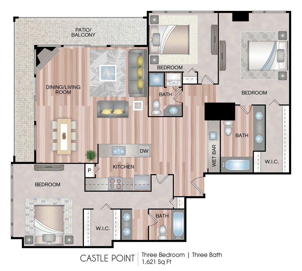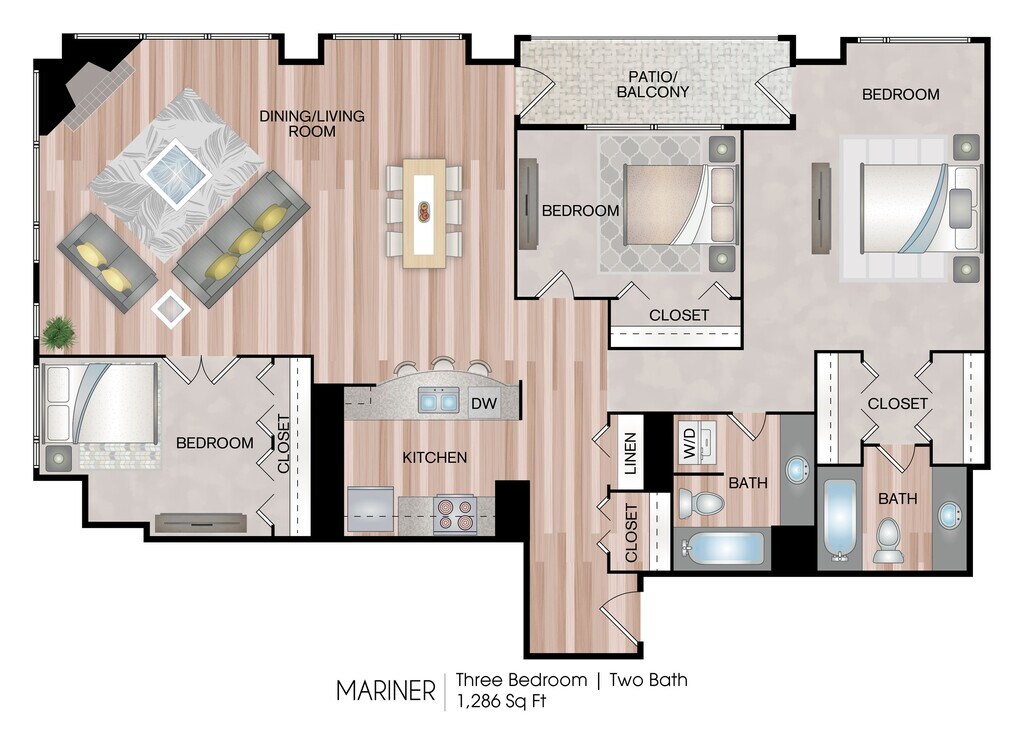 Modelo de apartamento: MarinerLlame para Precios3 Dormitorios, 2 Baños, 1286 sq ftNo Disponible![]()