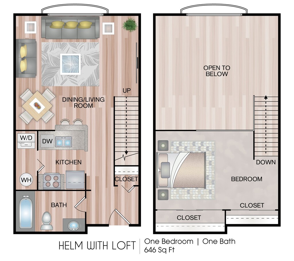 1 Dormitorio, 1 Baño, 659 pies²Disponible AhoraGalería del Modelo