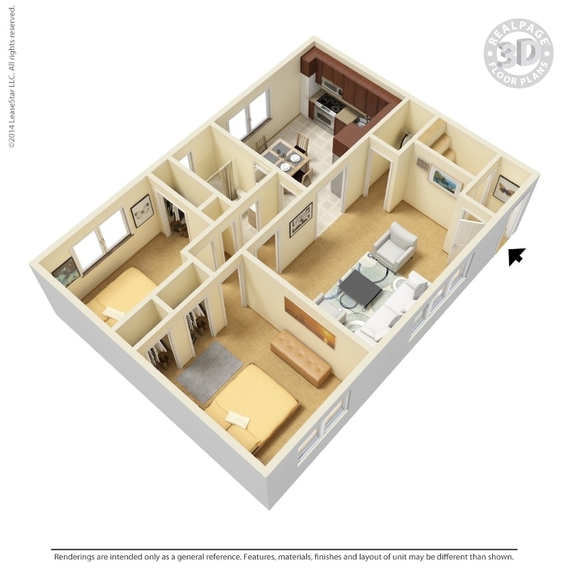2 Dormitorios, 1 Baño, 887 pies²Disponible January 23, 2026Galería del Modelo