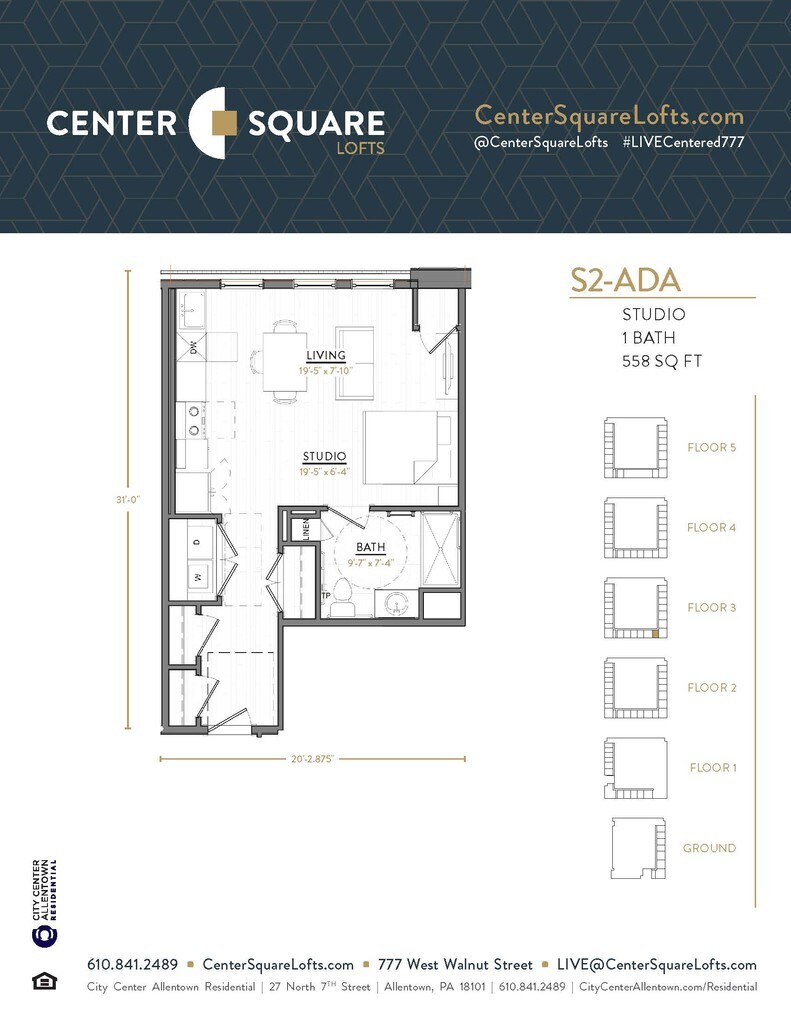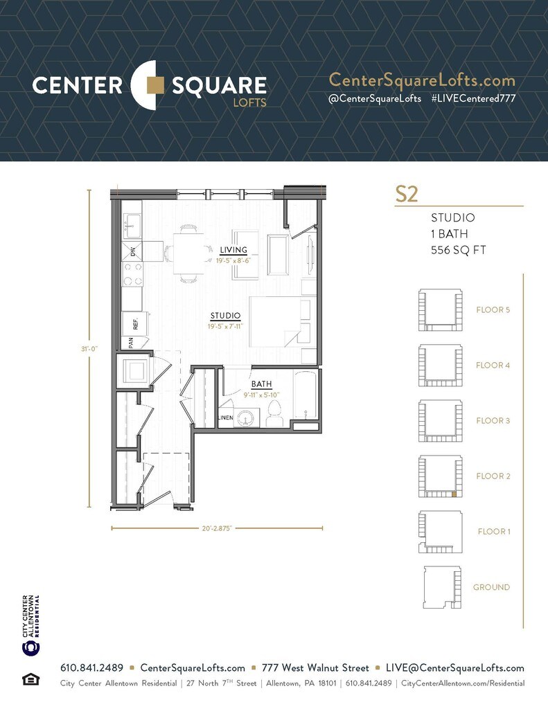 Modelo de apartamento: S2Estudio, 1 Baño, 556 sq ftDisponible November 8, 2025S2 - Plano 1 Unidad de apartamento: 215Modelo de apartamento: S2Estudio, 1 Baño, 556 sq ftDisponible November 8, 2025S1.1