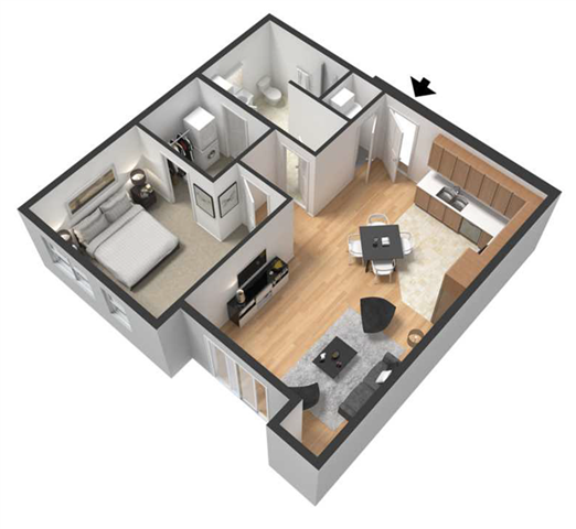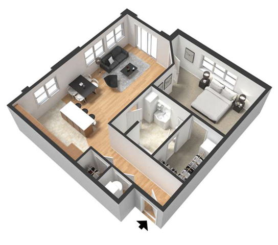 Estudio, 1 Baño, 598 pies²Disponible AhoraGalería del Modelo