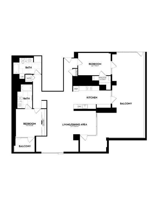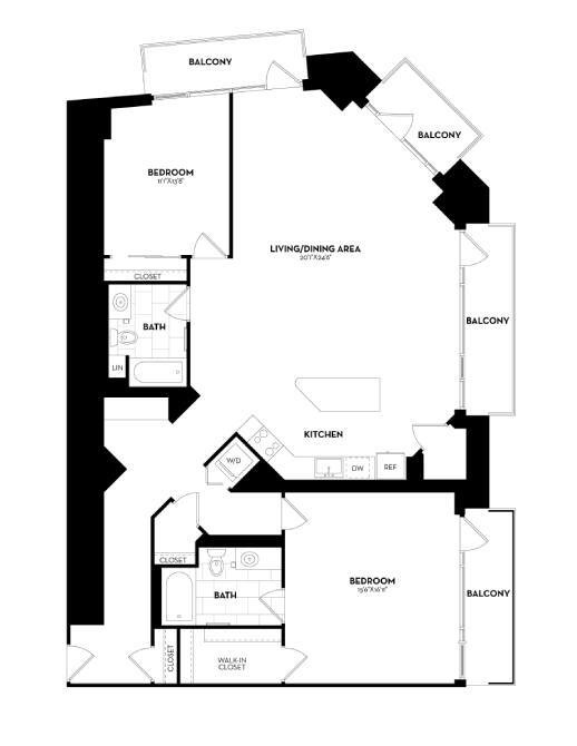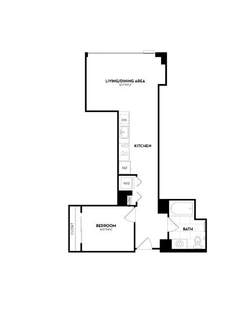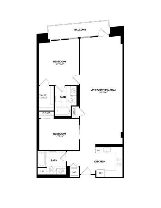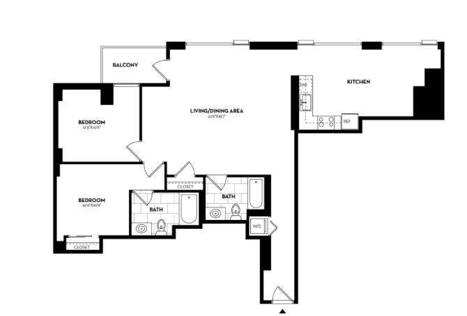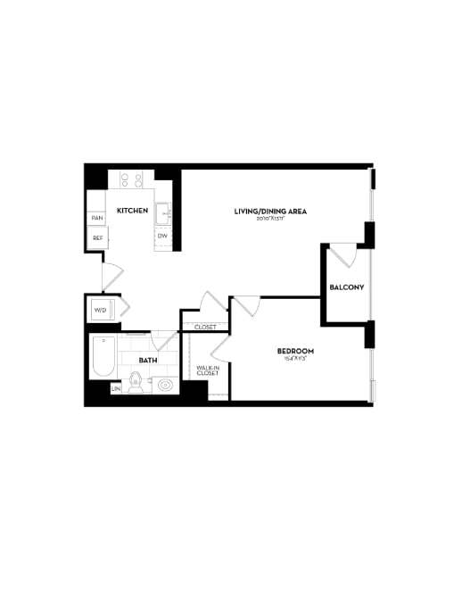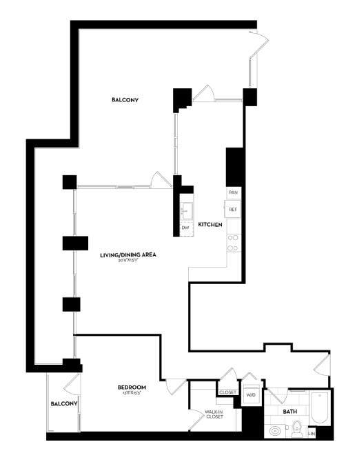 Modelo de apartamento: B19aDesde $2,9561 Dormitorio, 1 Baño, 641 sq ftDisponible AhoraLos planos son representaciones artísticas. Todas las dimensiones son aproximadas. El producto y las especificaciones reales pueden variar en tamaño o detalle. No todas las características están disponibles en cada vivienda en alquiler. Por favor, consulta con un representante para obtener más detalles.