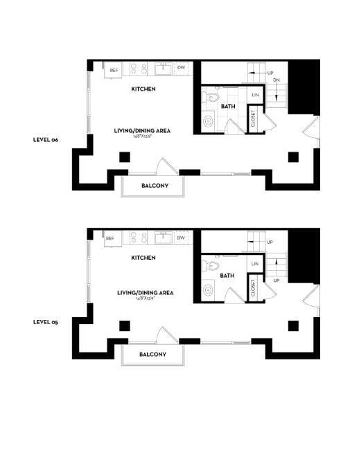 1 Dormitorio, 1 Baño, 591 pies²Disponible AhoraGalería del Modelo
