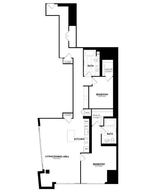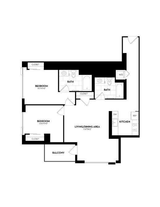 Modelo de apartamento: B19Desde $2,9121 Dormitorio, 1 Baño, 591 sq ftDisponible AhoraLos planos son representaciones artísticas. Todas las dimensiones son aproximadas. El producto y las especificaciones reales pueden variar en tamaño o detalle. No todas las características están disponibles en cada vivienda en alquiler. Por favor, consulta con un representante para obtener más detalles.