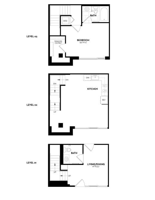 1 Dormitorio, 1 Baño, 641 pies²Disponible AhoraGalería del Modelo
