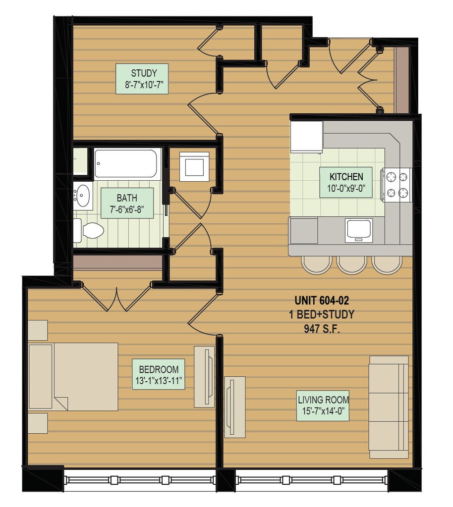 Estudio, 1 Baño, 602 pies²Disponible AhoraGalería del Modelo