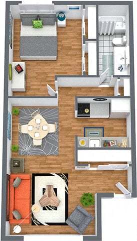 1 Dormitorio, 1 Baño, 650 pies²Disponible AhoraGalería del Modelo