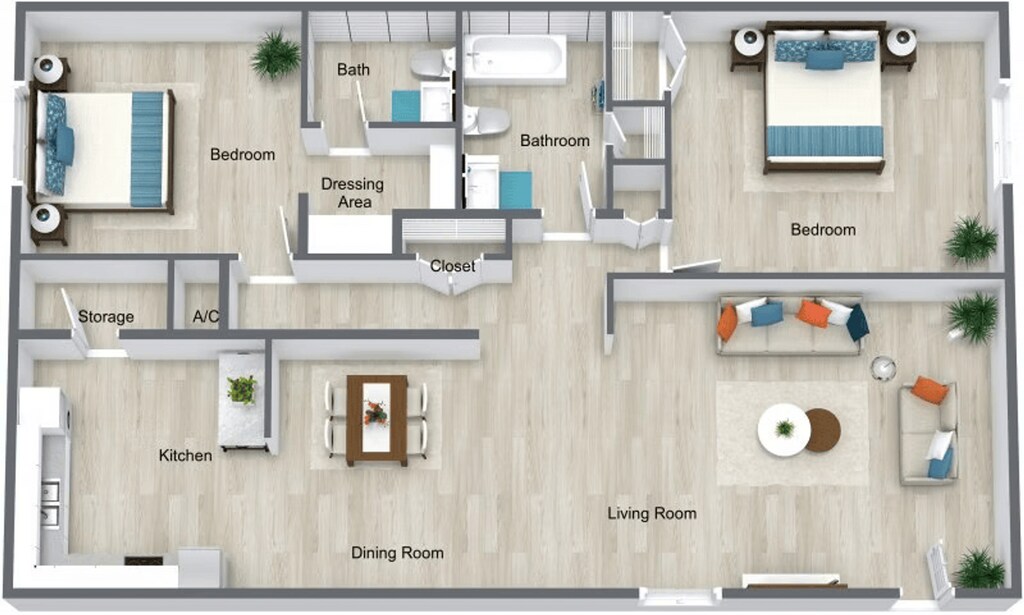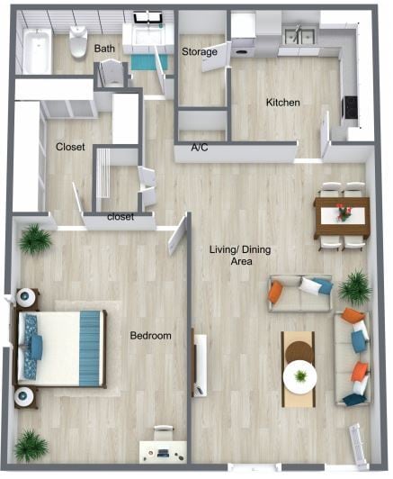 1 Dormitorio, 1 Baño, 850 pies²Disponible AhoraGalería del Modelo