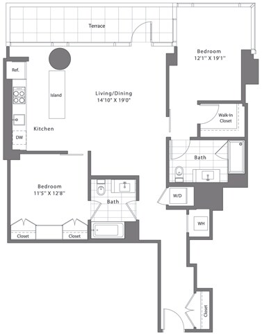 Modelo de apartamento: 1 Bed - 1 Bath | A03Desde $2,8251 Dormitorio, 1 Baño, 675 sq ftDisponible Ahora![]()