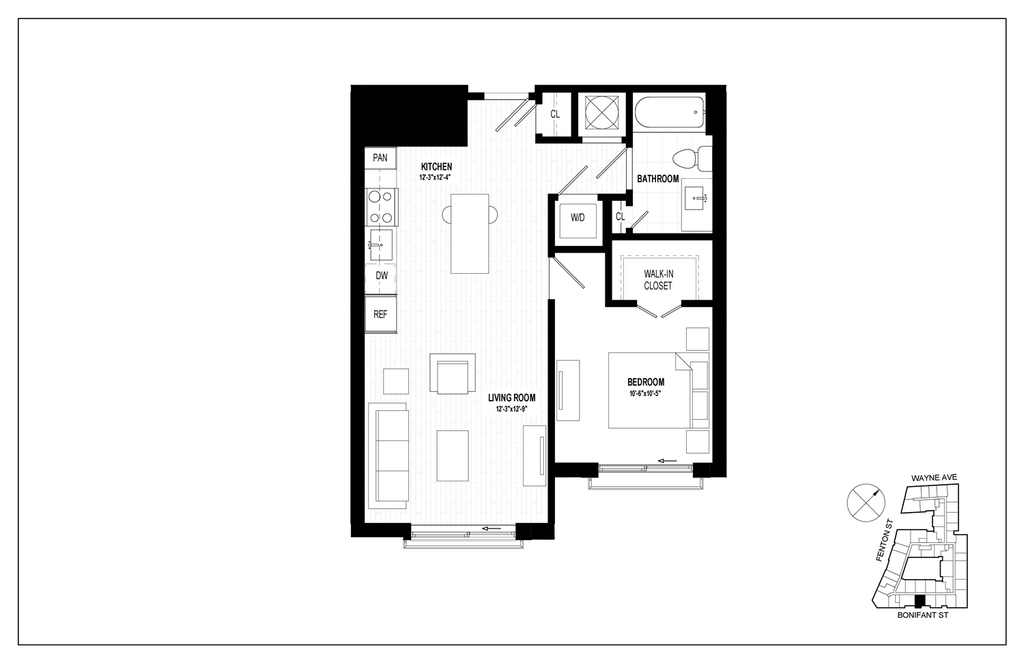 Estudio, 1 Baño, 499 pies²Disponible AhoraEl más grandeEsta opción tiene las unidades más grandes para este modeloGalería del Modelo