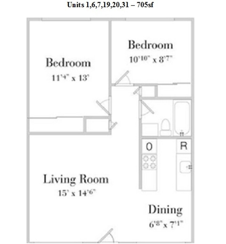 2 Dormitorios, 1 Baño, 705 pies²Galería del Modelo