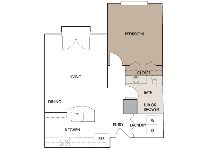 1 Dormitorio, 1 Baño, 764 pies²Disponible AhoraGalería del Modelo