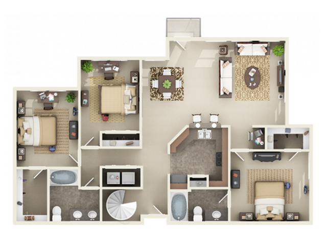 Modelo de apartamento: 3X2 Large Flat3 Dormitorios, 2 Baños, 1455 sq ftNo Disponible![]()