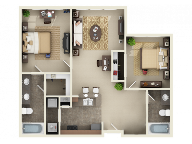 2 Dormitorios, 2 Baños, 1271 pies²El más grandeEsta opción tiene las unidades más grandes para este modeloGalería del Modelo